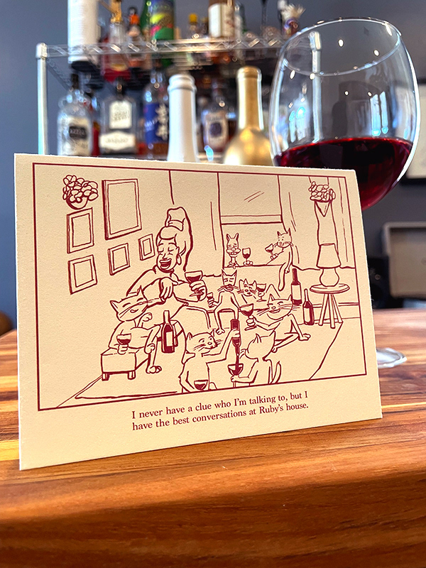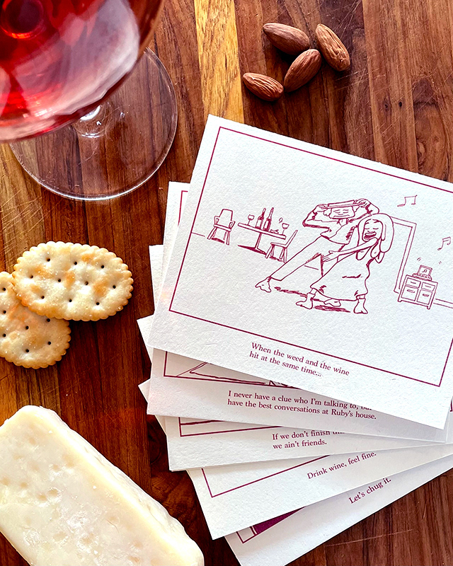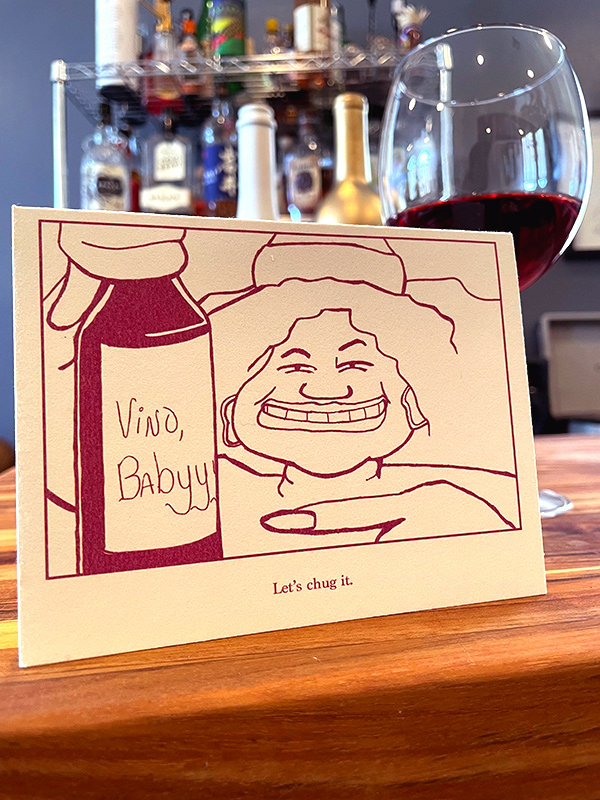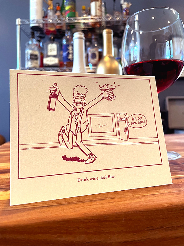 A series of greeting cards written, illustrated and designed by me to be sold with bottles of wine. Available at wine stores in Brooklyn and Jersey City.